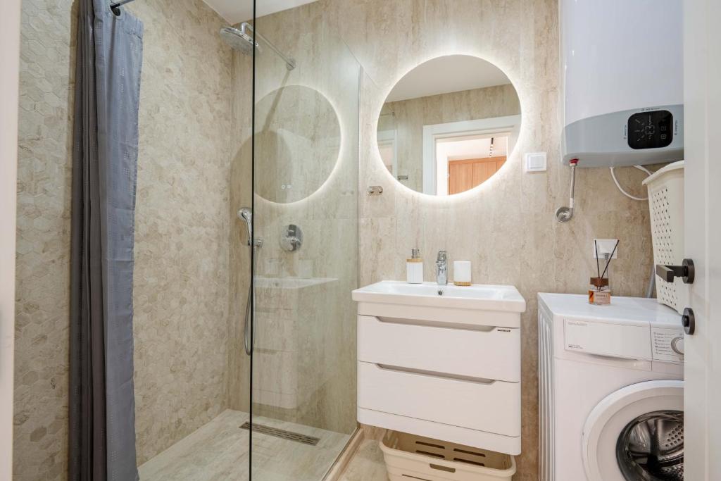 The pool with a view is the standout feature of this apartment. This air-conditioned apartment comprises 1 living room, 1 separate bedroom and 1 bathroom with a shower. Meals can be prepared in the kitchen, which comes with a stovetop, a refrigerator, a dishwasher and kitchenware. Featuring a terrace with sea views, this apartment also provides a washing machine and a flat-screen TV with satellite channels. The unit offers 2 beds.